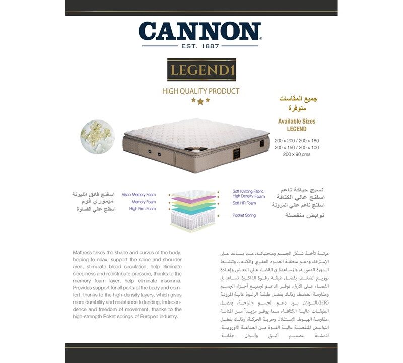 ليونة تتكيف مع درجة الحرارة كما صممت بأكثر من ١٤ طبقة من الراحة الفندقية وتتلاءم بشكل مثالي مع انسابيه الجسم